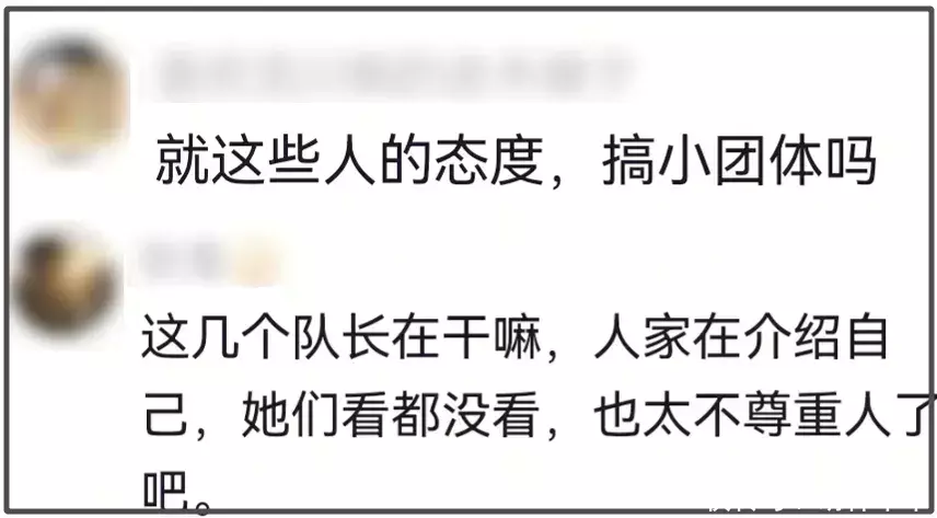 不少网友也觉得她们这种行为很不礼貌,别人说话的时候,就算不感兴趣,不想听,起码也做做样子吧,不仅当面无视还拉帮结派地说小话,太不尊重人了。